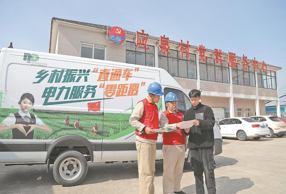 2024年4月20日,國家電網(wǎng)江蘇電力(如東公司退役軍人)共產(chǎn)黨員服務(wù)隊隊員來到如東縣曹埠鎮(zhèn)應(yīng)泉村開展電力便民服務(wù)。張浩 攝