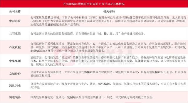 其中,位于中游的氫儲存和輸運(yùn)是氫能產(chǎn)業(yè)中的重要子體系之一,但該環(huán)節(jié)成本較高,已經(jīng)在一定程度上掣肘了氫能的產(chǎn)業(yè)化發(fā)展。當(dāng)前,多家企業(yè)積極布局氫儲運(yùn)賽道,探索突破成本瓶頸,有望率先受益于氫能市場整體放量增長。