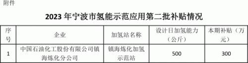 關(guān)于2023年寧波市氫能示范應(yīng)用第二批補貼情況的公示
