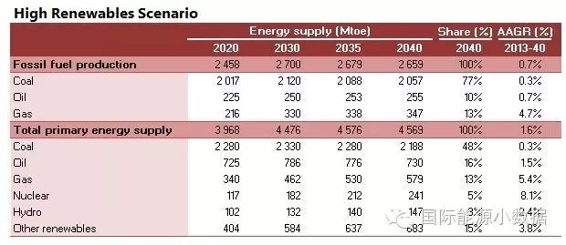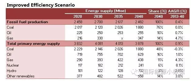 在大大提高能效的情境下,2040年一次能源供應(yīng)只有38.78億噸標(biāo)油,其中煤炭仍占48%、石油16%、天然氣11%、核電6%、水電3%、非水可再生能源14%。從發(fā)電量來(lái)看,2040年總裝機(jī)達(dá)2665吉瓦,發(fā)電量達(dá)9.39萬(wàn)億千瓦時(shí),煤電占51%、天然氣發(fā)電6%、核電10%、水電16%、風(fēng)電 10%、光伏4%、生物質(zhì)4%。