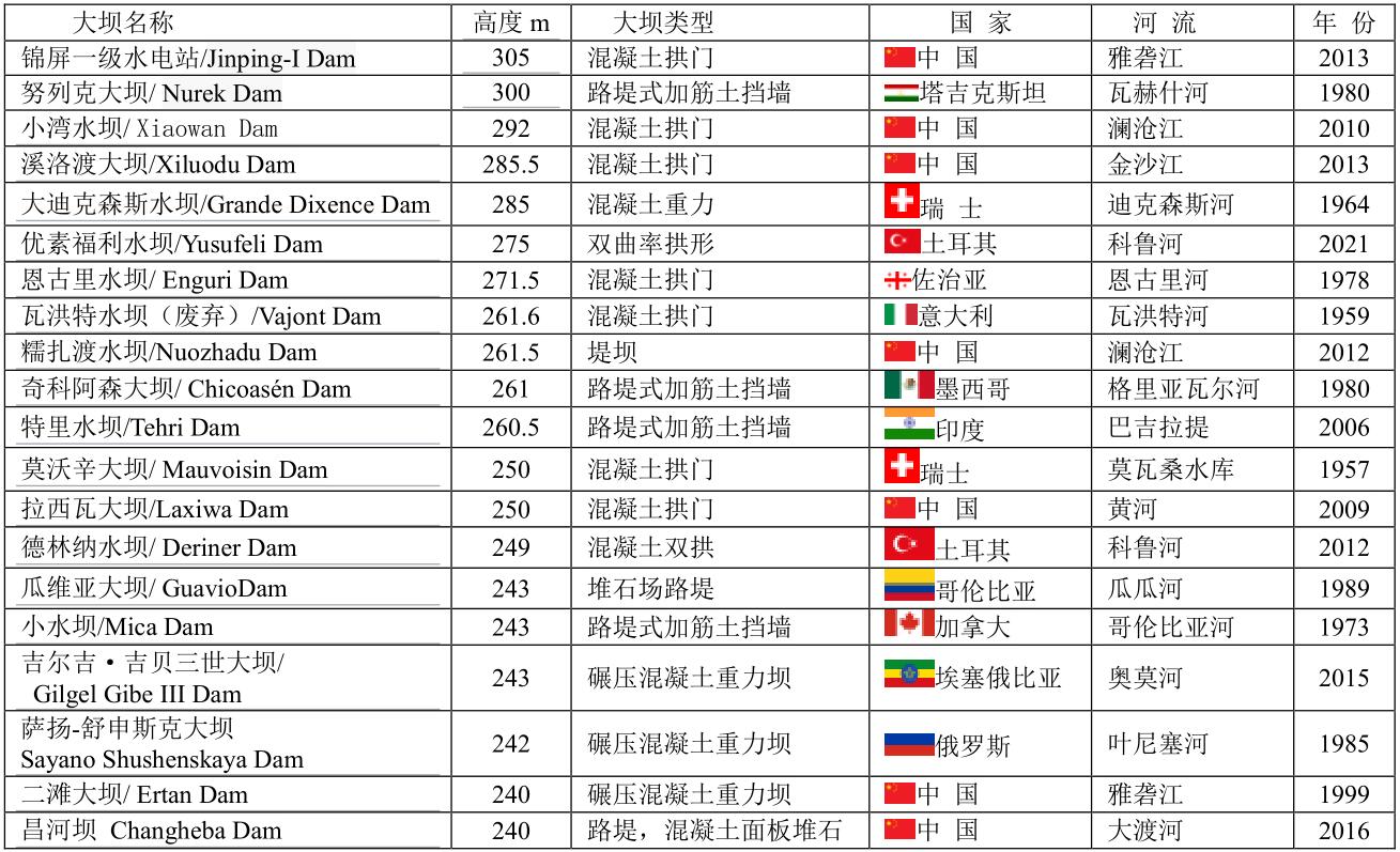 而今眼目下,大壩高度從135m到305m運行的有241座;另外還有從135m到335m在建的大壩有30座。