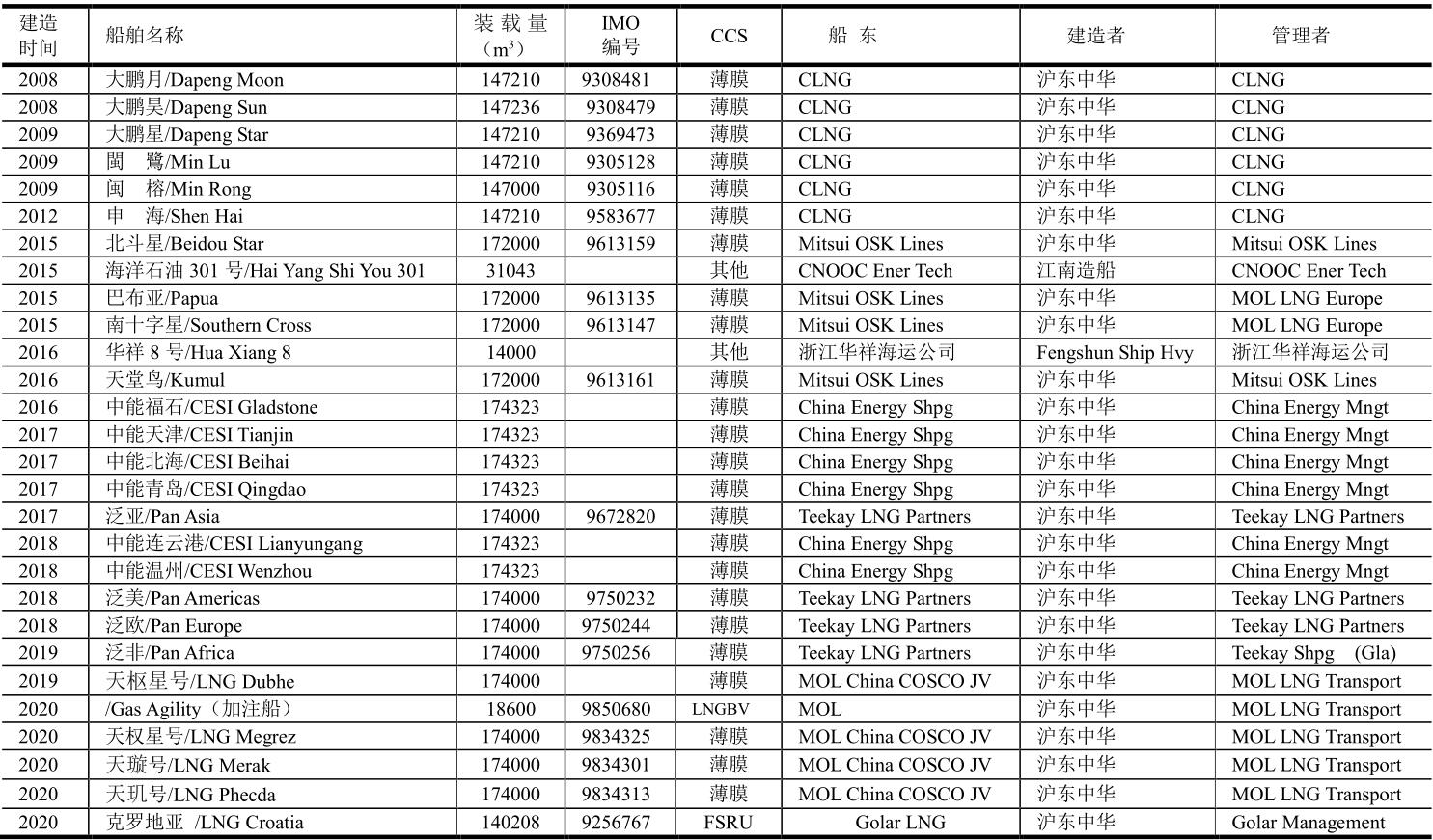 2020年全球交付47艘船舶,包括6艘FSRU和11艘小于50000m3的船舶。交付船舶的平均容量(不包括FSRU和小于50000m3的船舶)為174765m3。2020年中國(guó)交付了四艘LNG運(yùn)輸船舶。