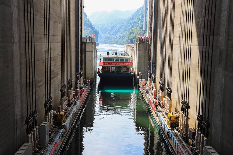 當(dāng)日,位于貴州省遵義市余慶縣境內(nèi)的烏江構(gòu)皮灘水電站通航工程開始試運(yùn)行。構(gòu)皮灘水電站通航工程線路總長(zhǎng)2306米,由上下游引航道、三級(jí)垂直升船機(jī)和兩級(jí)中間渠道組成。投入試運(yùn)行后,500噸級(jí)船舶可從貴陽(yáng)的開陽(yáng)碼頭依次通過構(gòu)皮灘、思林、沙沱、彭水,在重慶涪陵進(jìn)入長(zhǎng)江。