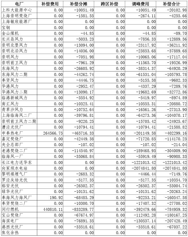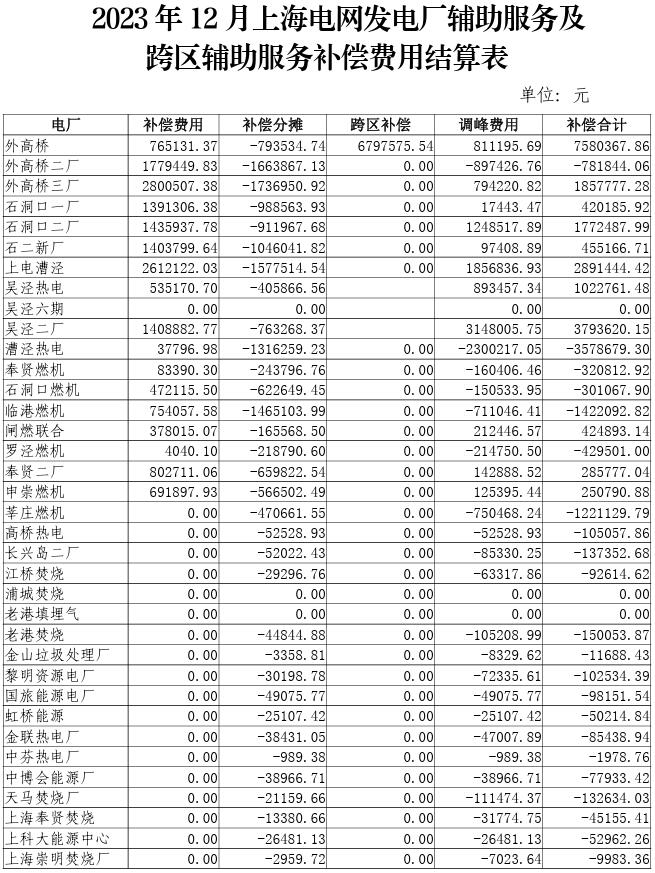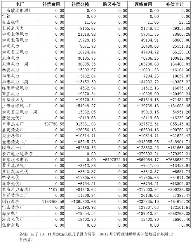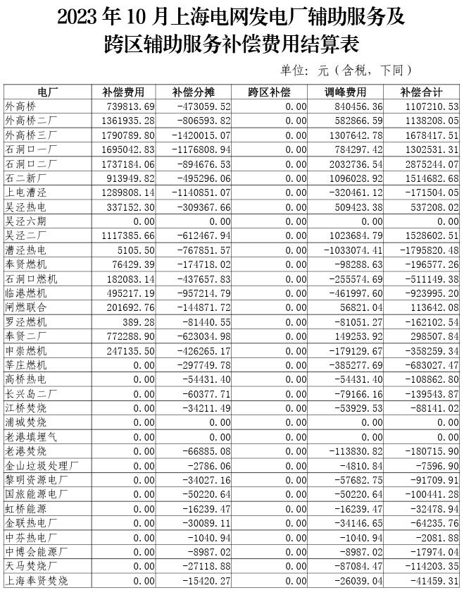 附件:2023年10-12月上海電網(wǎng)發(fā)電廠輔助服務及跨區(qū)輔助服務補償費用結算表