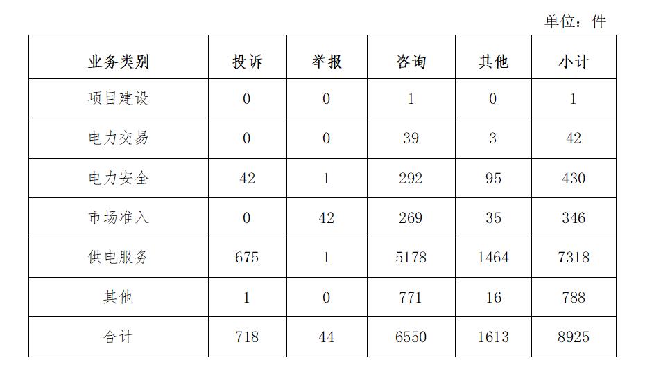2023年1月共收到投訴舉報事項781件,根據(jù)國家有關(guān)法律法規(guī)規(guī)定,國家能源局派出機構(gòu)對屬于監(jiān)管職責(zé)范圍的696件進行了受理,占投訴舉報量的89.11%;其他根據(jù)相關(guān)規(guī)定不予受理的,已按照有關(guān)規(guī)定進行了及時轉(zhuǎn)辦,并將相關(guān)情況及時告知了當(dāng)事人。
