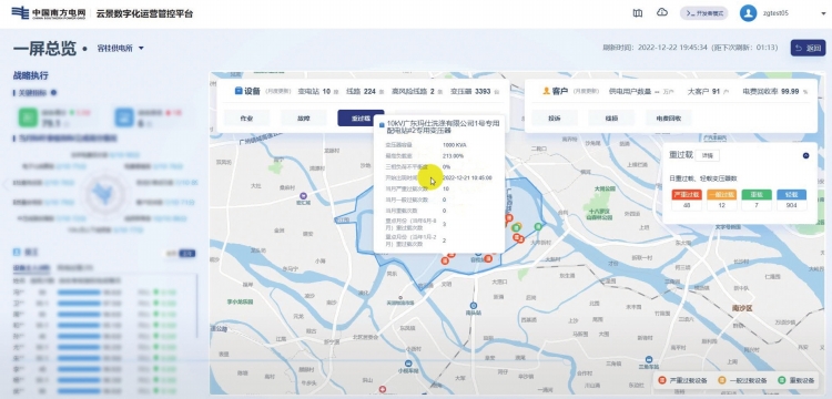 云景平臺所級一屏總覽,為供電所所長等管理人員提供管理的客戶、設(shè)備和員工的全景概覽,以及一線作業(yè)的現(xiàn)場觸達。