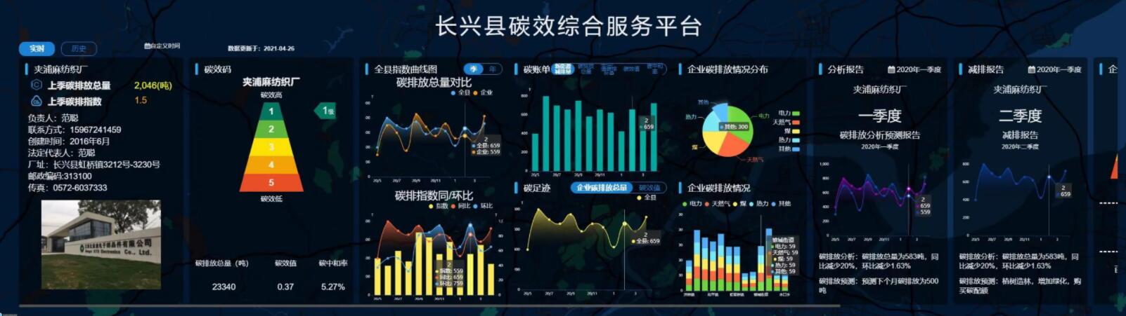 2021年2月,長(zhǎng)興首創(chuàng)推出“能源碳效碼”,依托電力大數(shù)據(jù)平臺(tái),集成區(qū)域、企業(yè)生產(chǎn)經(jīng)營(yíng)的用電、用氣、用煤、用油等能耗數(shù)據(jù),轉(zhuǎn)換成碳排放量,結(jié)合區(qū)域、企業(yè)產(chǎn)值,進(jìn)行精準(zhǔn)統(tǒng)計(jì)、分析和賦碼,讓企業(yè)碳排放水平一“碼”了然。