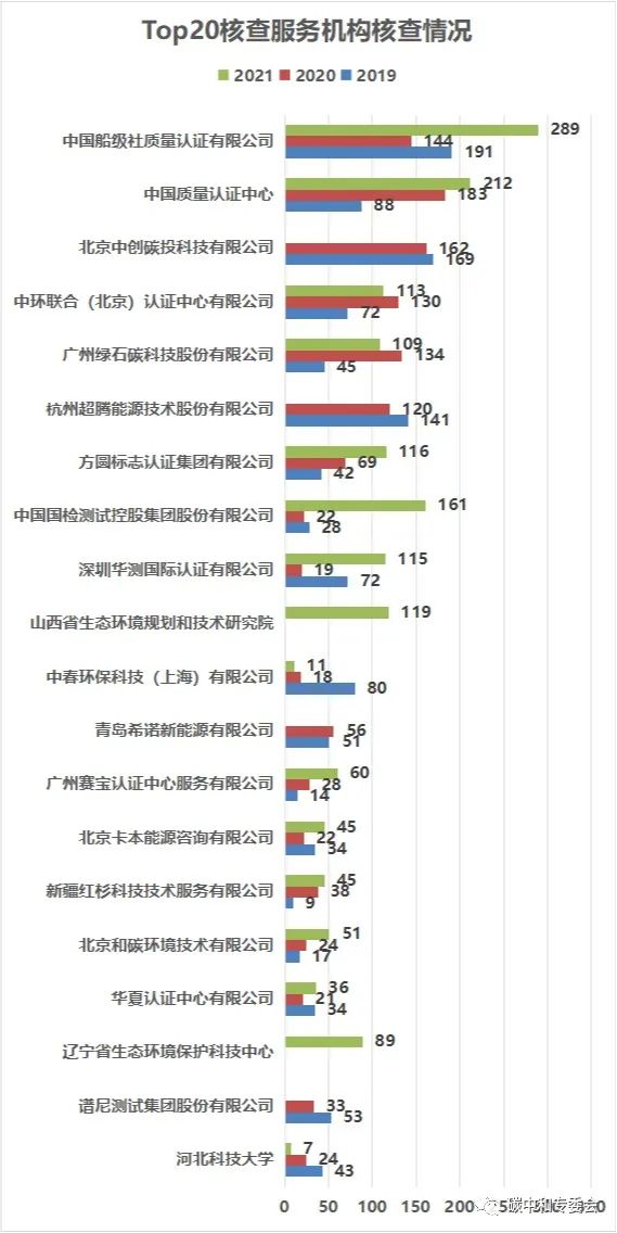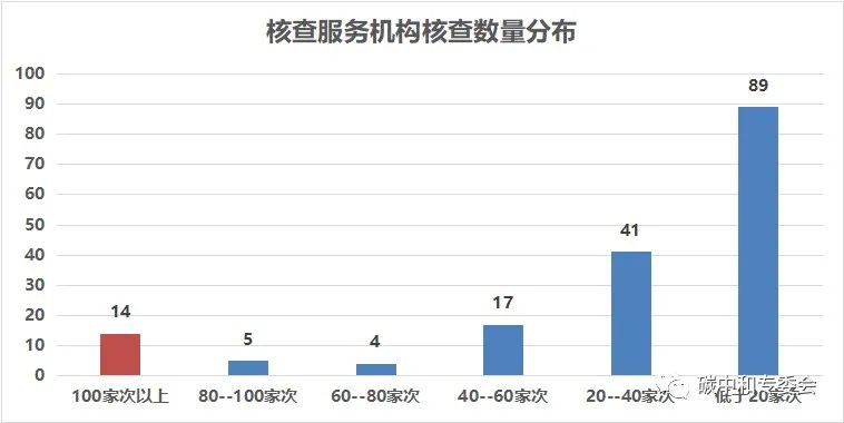 據(jù)上海青悅統(tǒng)計,在170家核查服務(wù)機(jī)構(gòu)中,核查超百家次的核查服務(wù)機(jī)構(gòu)共14家。單次核查最多的核查服務(wù)機(jī)構(gòu)為中國船級社質(zhì)量認(rèn)證有限公司,核查數(shù)量達(dá)624家次。