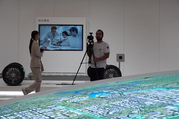巴西勞動者電視臺(TVT)記者M(jìn)auro Ram Ramos Pintos在拍攝園區(qū)規(guī)劃圖。中國日報網(wǎng)記者 齊磊 攝