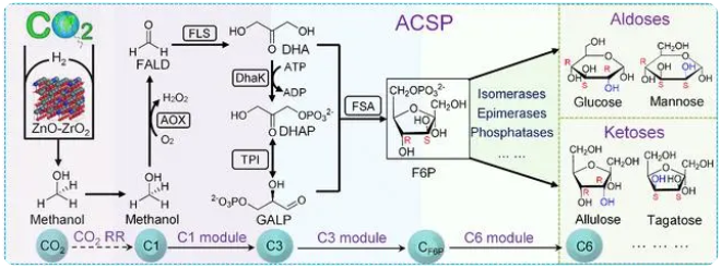己糖是在自然界廣泛分布、與機體營養(yǎng)代謝最為密切的糖的統(tǒng)稱。迄今為止,人類對糖的獲取主要依賴于植物類生物質(zhì)資源。然而,這種傳統(tǒng)的“二氧化碳-生物質(zhì)資源-糖”的加工過程,受到植物光合作用能量轉(zhuǎn)換效率限制;更重要的是,由于土地退化和短缺、生態(tài)系統(tǒng)退化、全球變暖導(dǎo)致的極端天氣和自然災(zāi)害,使依賴于糖類生物質(zhì)資源的生產(chǎn)方式面臨著原料供應(yīng)的安全和風(fēng)險。
