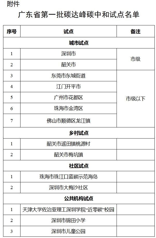 附件:廣東省第一批碳達(dá)峰碳中和試點(diǎn)名單