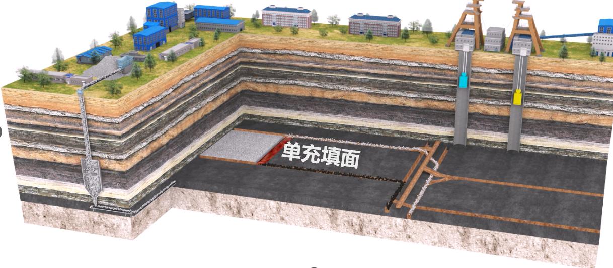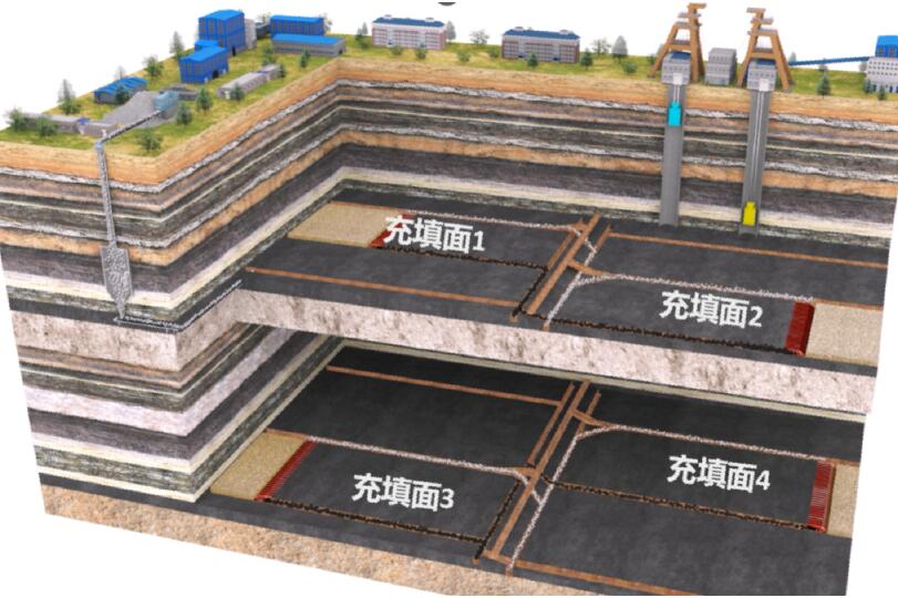 四是研究攻關多面并采的負碳高效充填開采技術與工藝,破解礦山充填開采影響煤炭產(chǎn)能的難題。攻關新型充填開采技術,創(chuàng)新負碳高效膠結高孔隙充填體工藝方法,來提高單面充填開采產(chǎn)能(100~500萬t/a)。在此基礎上,構建實施2~3個工作面同時并采的技術方案思路,就可實現(xiàn)千萬噸級礦井負碳高效充填開采。同時探索攻關單層采區(qū)多面并采和立體空間多面并采的負碳高效開采工藝和相應的負碳高效充填技術及裝備,突破充填開采影響煤炭生產(chǎn)效率的瓶頸,可望實現(xiàn)千萬噸級以上產(chǎn)能的礦山負碳高效充填開采。