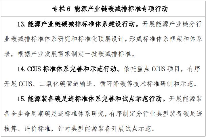 ——制定一批新興技術和產(chǎn)業(yè)鏈碳減排相關技術標準,健全相關標準組織體系,實現(xiàn)能源領域碳達峰產(chǎn)業(yè)鏈相關環(huán)節(jié)標準全覆蓋。