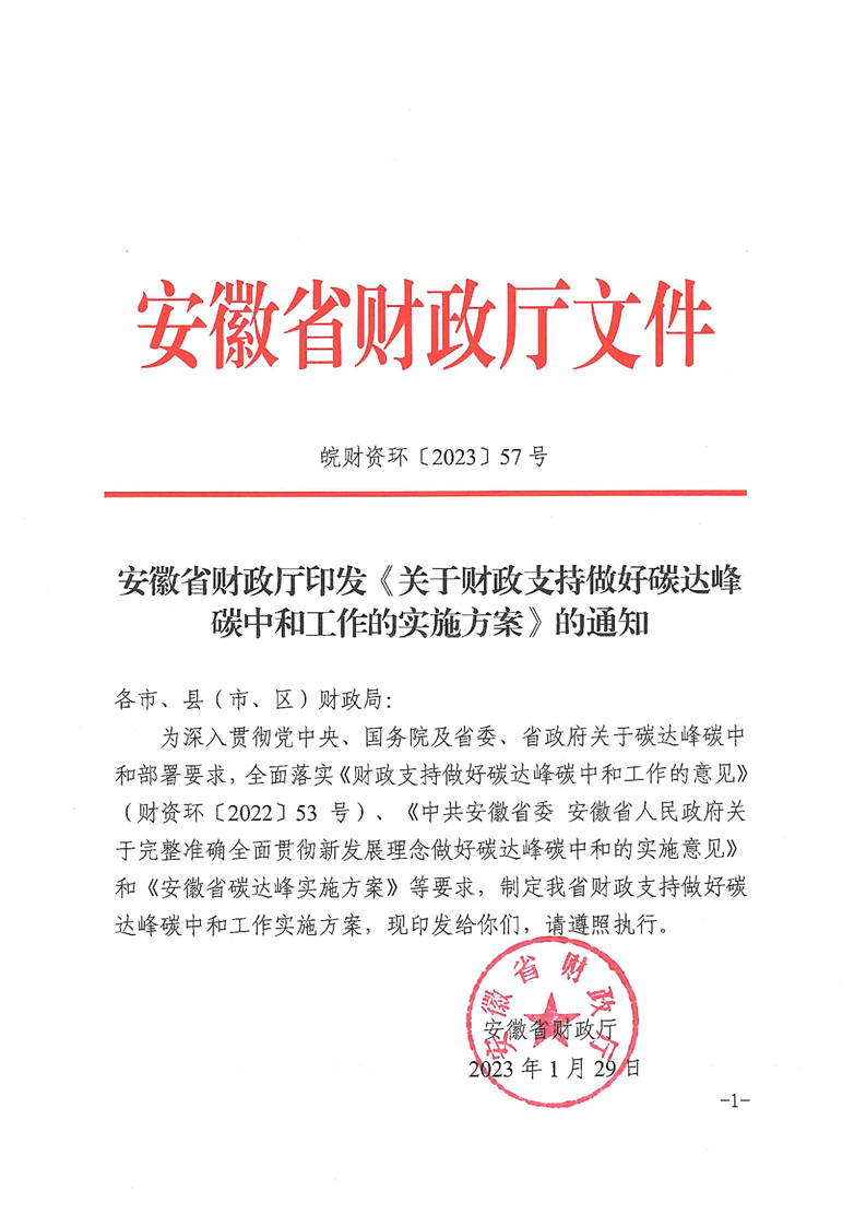 近日,安徽省財政廳印發(fā)《關(guān)于財政支持做好碳達峰碳中和工作的實施方案》的通知。