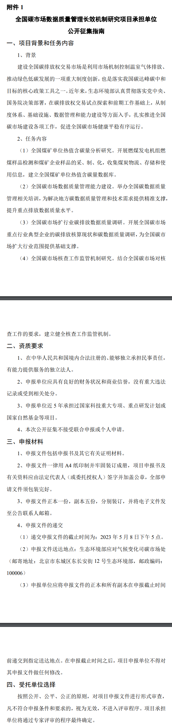 附 件:1.全國(guó)碳市場(chǎng)數(shù)據(jù)質(zhì)量管理長(zhǎng)效機(jī)制研究項(xiàng)目承擔(dān)單位公開(kāi)征集指南