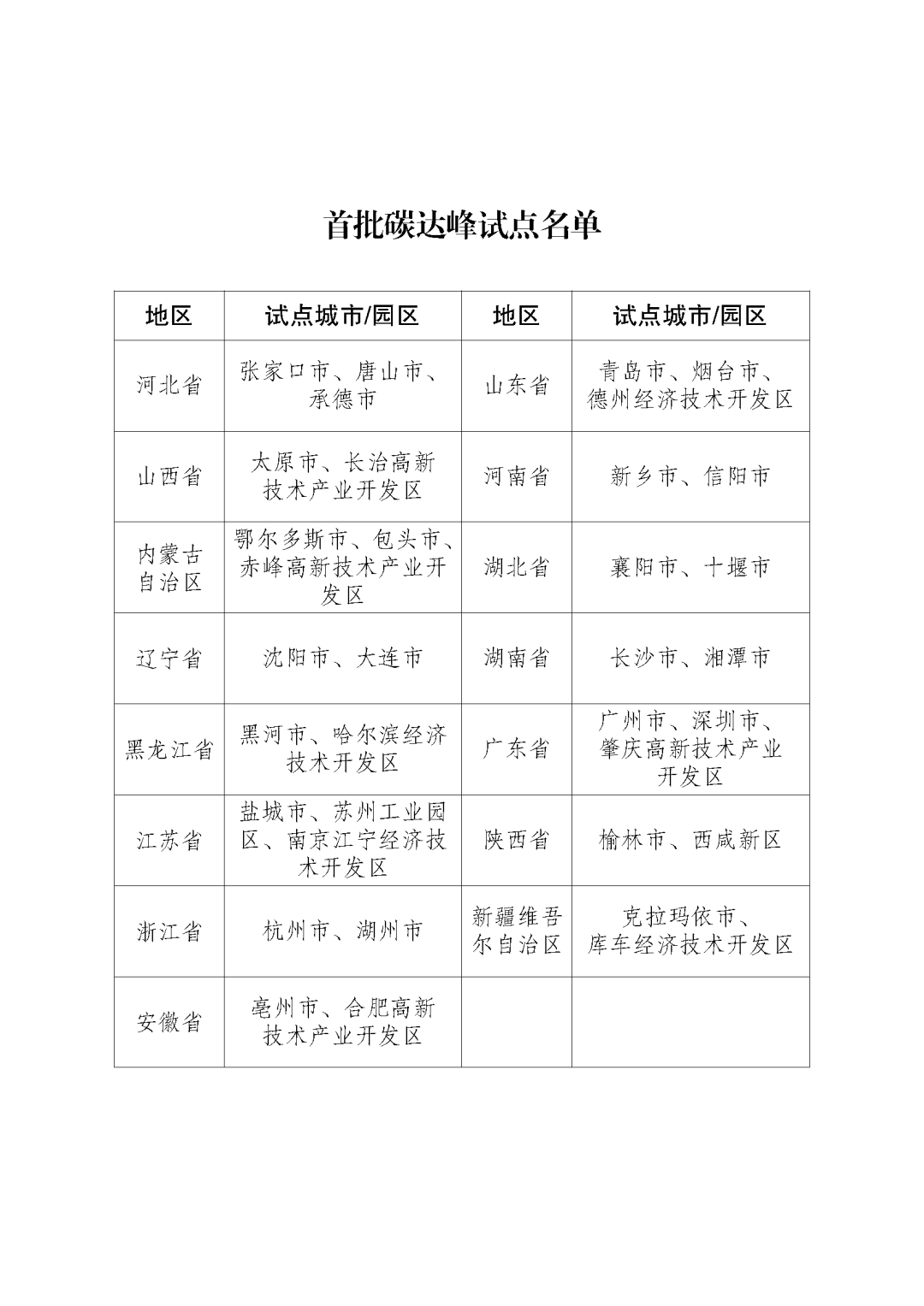 國(guó)家發(fā)展改革委辦公廳關(guān)于印發(fā)首批碳達(dá)峰試點(diǎn)名單的通知