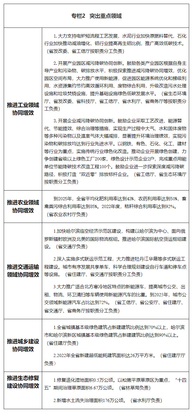 黑龍江省生態(tài)環(huán)境廳官網(wǎng)發(fā)布《黑龍江省減污降碳協(xié)同增效實施方案》,方案提出,到2025年,減污降碳協(xié)同推進的工作格局基本形成,重點區(qū)域、重點領域結構優(yōu)化調整和綠色低碳發(fā)展取得明顯成效,形成可復制、可推廣的典型經(jīng)驗,減污降碳協(xié)同度有效提升。
