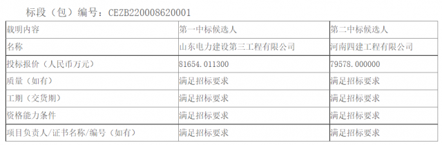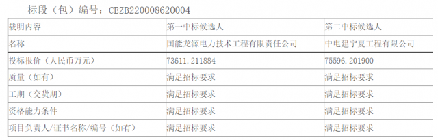 11月3日,龍?jiān)措娏幭凝堅(jiān)垂尽皩幭嬷绷鳌迸涮仔履茉椿刂行l(wèi)300萬(wàn)千瓦光伏復(fù)合項(xiàng)目(一期100萬(wàn)千瓦)光伏區(qū)EPC總承包公開(kāi)招標(biāo)中標(biāo)候選人公示,中標(biāo)結(jié)果如下表所示。