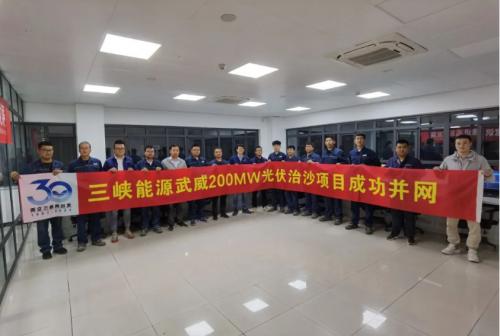 三峽能源甘肅武威20萬千瓦光伏治沙項(xiàng)目首批機(jī)組并網(wǎng)