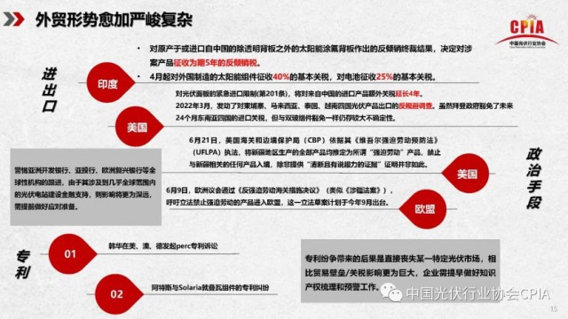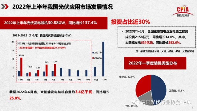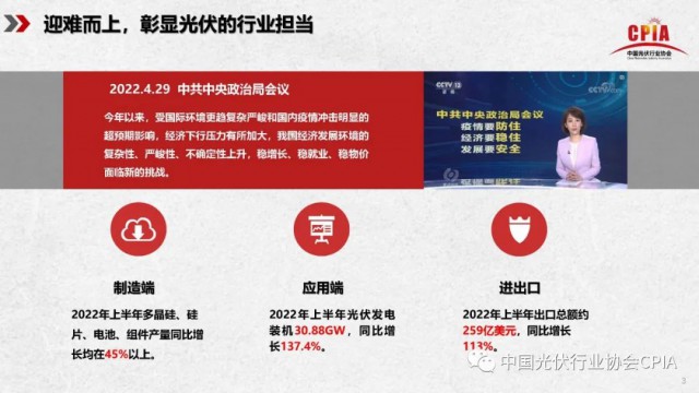 2022年7月21日,由中國(guó)光伏行業(yè)協(xié)會(huì)主辦的“光伏行業(yè)2022年上半年發(fā)展回顧與下半年形勢(shì)展望研討會(huì)”采用線(xiàn)上直播形式順利召開(kāi)。中國(guó)光伏行業(yè)協(xié)會(huì)名譽(yù)理事長(zhǎng)王勃華出席會(huì)議并作“2022年光伏行業(yè)上半年發(fā)展回顧與下半年形勢(shì)展望”報(bào)告。