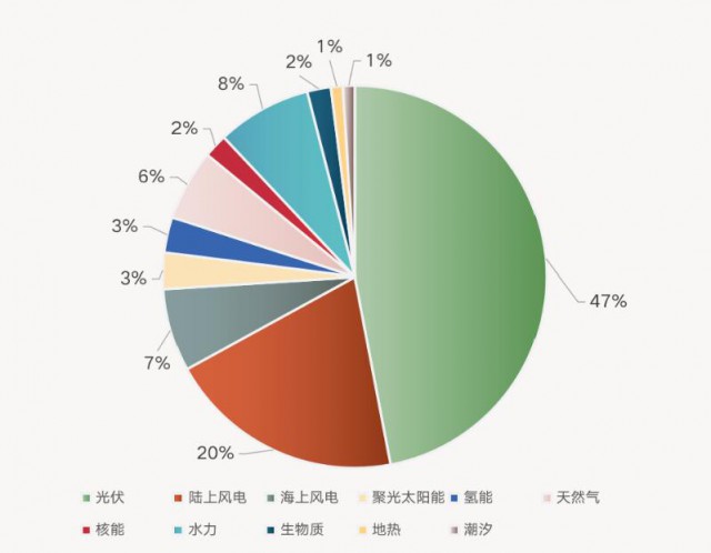 該機構(gòu)還預(yù)測,到2050年,光伏將在全球電力裝機中的占比達到47%,風(fēng)電占比為27%。
