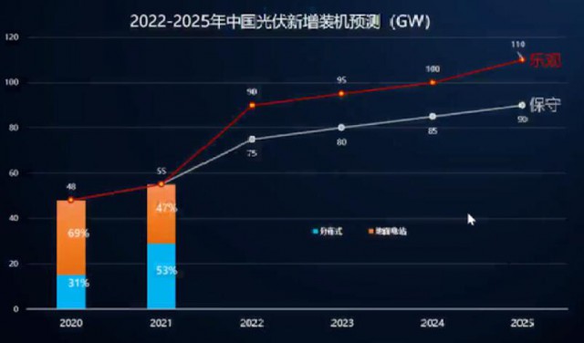 根據(jù)中國光伏行業(yè)協(xié)會(CPIA)則預(yù)估,2022-2025年,我國年均新增光伏裝機將達到83-100GW,系全球光伏第一大裝機國。