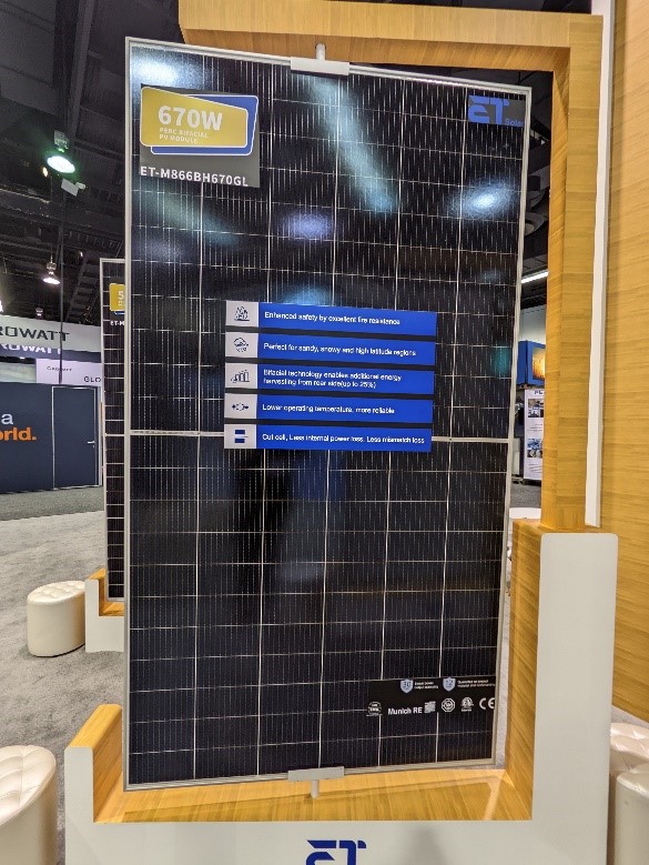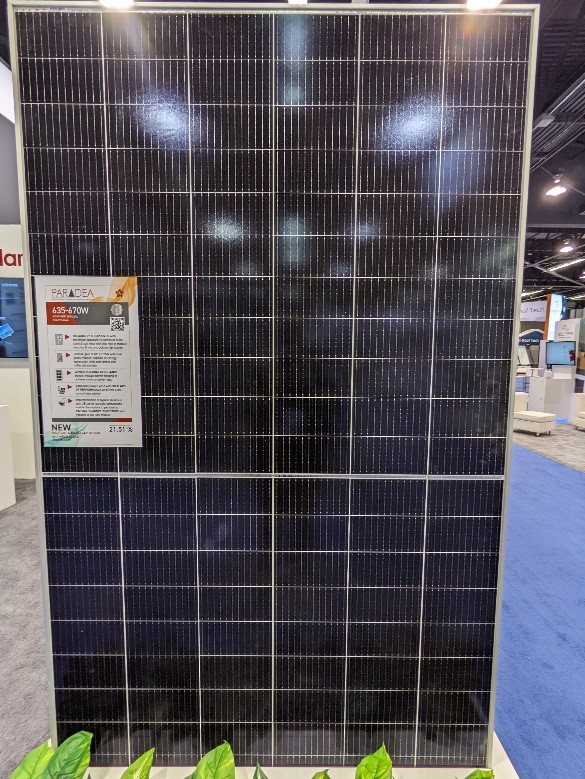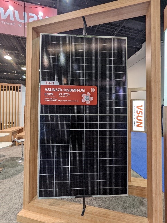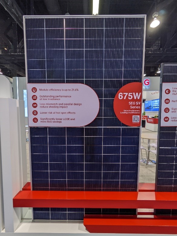 據(jù)不完全統(tǒng)計(jì),在本次RE+展會(huì)中,中國領(lǐng)軍企業(yè)天合光能、阿特斯、正泰,海外企業(yè)韓華、SEG、Waaree等10多家光伏領(lǐng)先企業(yè)紛紛推出600W+產(chǎn)品。600W+產(chǎn)品在北美已經(jīng)蔚然成風(fēng),成先進(jìn)組件的代表。