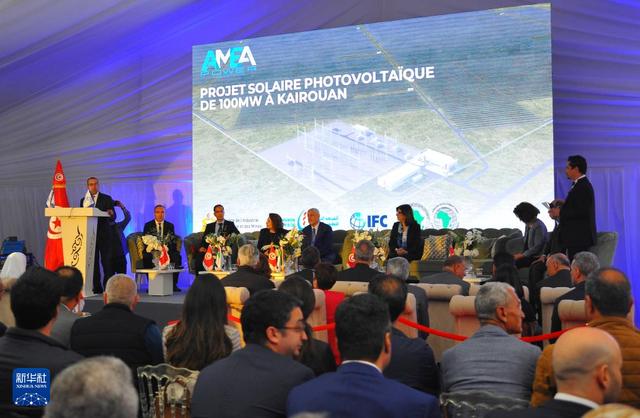 這是5月8日在突尼斯凱魯萬(wàn)省拍攝的光伏電站項(xiàng)目開(kāi)工儀式現(xiàn)場(chǎng)。新華社發(fā)(阿代爾攝)