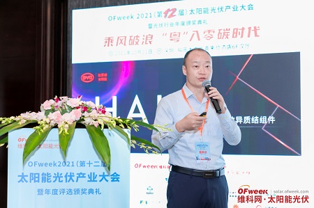蘇州騰暉光伏技術(shù)有限公司研發(fā)總監(jiān)錢洪強(qiáng)先生,就基于異質(zhì)結(jié)電池方面的問題,發(fā)表了主題為《雙碳目標(biāo)下光伏技術(shù)發(fā)展的趨勢討論》的精彩演講。