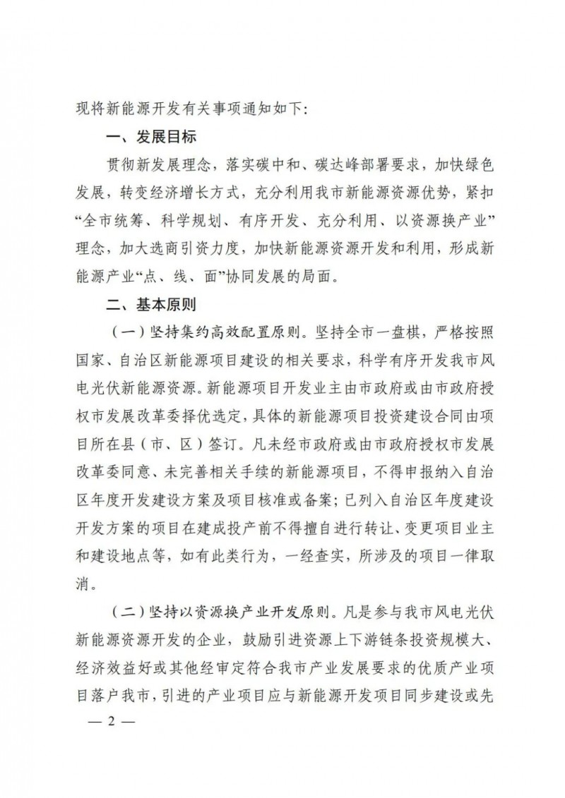 風電領域:在12個月內(nèi)完成風資源測風、編寫風資源報告、可研報告、系統(tǒng)接入分析、各部門選址意見等前期工作,確保達到向自治區(qū)申報建設指標條件,否則原合作資源協(xié)議失效。