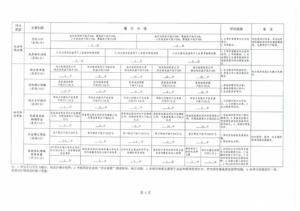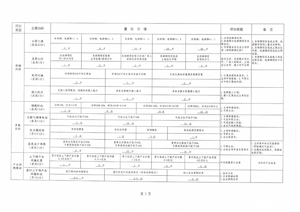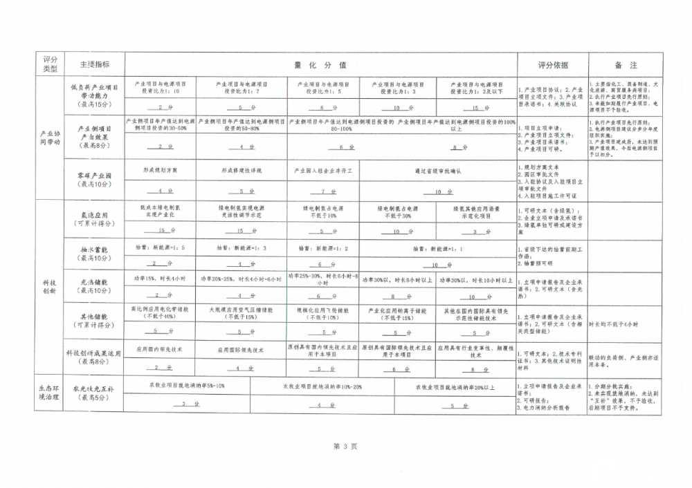 根據(jù)文件,其評分內(nèi)容主要包括企業(yè)投資能力、項目前期深度、荷儲網(wǎng)源、多能互補、產(chǎn)業(yè)協(xié)同帶動、生態(tài)治理以及地方經(jīng)濟(jì)貢獻(xiàn)等八大類,各類項目下面細(xì)小劃分35個小項。不同類別之間設(shè)置不同分值,以總得分計算排序。