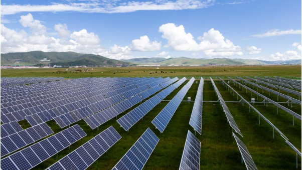 位于青海省海南藏族自治州共和縣塔拉灘的千萬千瓦級生態(tài)光伏發(fā)電基地,新割過的草地平展如毯,整齊的光伏矩陣間,工人們手持水管,給光伏板洗塵。遠(yuǎn)處,羊群穿梭,自由覓食。