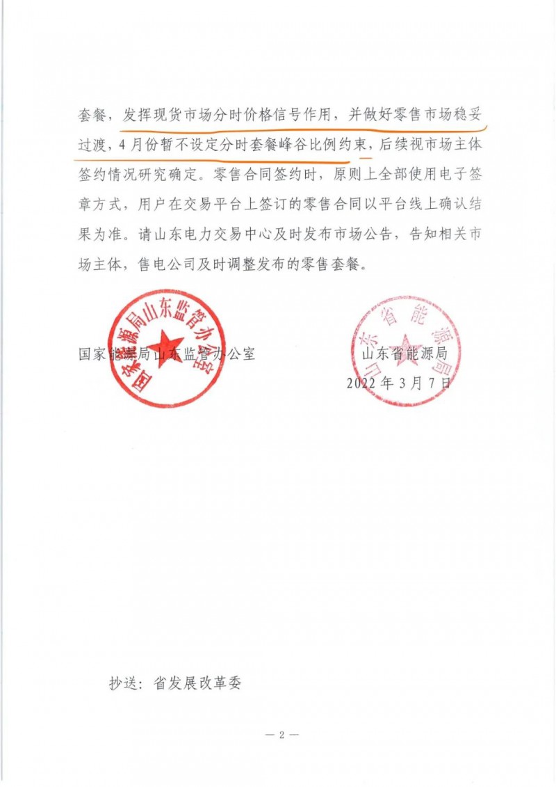 在此次交易公告發(fā)布之前,本月另一份文件的印發(fā)也相當(dāng)重要:3月7日,山東政府發(fā)布《關(guān)于做好山東省電力現(xiàn)貨市場零售交易有關(guān)事項(xiàng)的通知》,宣布從4月起,山東零售市場取消固定費(fèi)率套餐,引導(dǎo)市場主體簽訂基于山東現(xiàn)貨市場價(jià)格的分時(shí)價(jià)格類套餐。(下圖)
