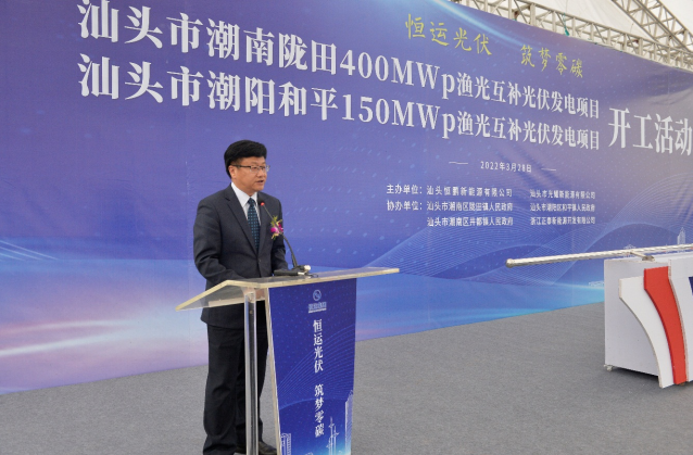 現(xiàn)代能源集團(tuán)肖立總經(jīng)理在致辭中表示,汕頭地區(qū)發(fā)展光伏產(chǎn)業(yè)具有得天獨(dú)厚的天然優(yōu)勢(shì),隴田、和平漁光互補(bǔ)光伏發(fā)電項(xiàng)目將助力汕頭地區(qū)加快構(gòu)建清潔低碳、安全高效的現(xiàn)代能源體系,為當(dāng)?shù)貪O業(yè)增效、漁民增收、農(nóng)村增綠,推動(dòng)美麗鄉(xiāng)村再升級(jí)做出重要貢獻(xiàn)。