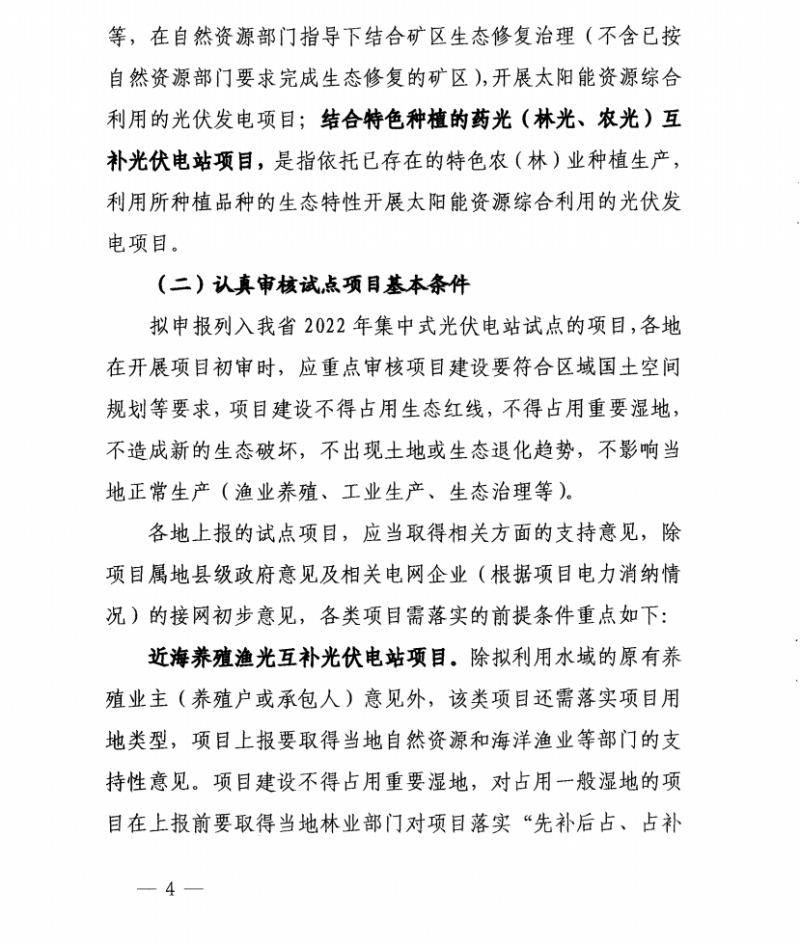 各地申報(bào)10萬千瓦及以上的大型集中光伏電站項(xiàng)目。對(duì)于占用一般濕地的項(xiàng)目,其投資規(guī)模必須符合福建省重點(diǎn)項(xiàng)目的申報(bào)條件。