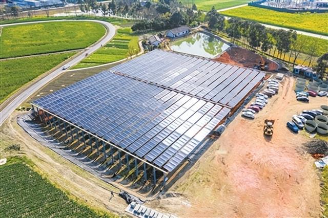 記者看到,在魚塘旁邊還有一座兩層樓的建筑正在進(jìn)行外立面裝修。據(jù)了解,這是“漁光一體”項(xiàng)目的配套設(shè)施,這棟綜合樓包含“鄉(xiāng)村振興+碳中和”科普教育展示基地、多功能會(huì)議室、頂層觀景平臺(tái)等,建成后將集科普展示、會(huì)務(wù)、觀景、研學(xué)等功能于一體。天府農(nóng)博園管委會(huì)相關(guān)負(fù)責(zé)人表示,項(xiàng)目建成運(yùn)營(yíng)后,將成為開展碳中和與鄉(xiāng)村振興科普研學(xué)活動(dòng)的基地,讓更多市民、游客近距離感受光伏發(fā)電與智慧養(yǎng)魚是怎樣結(jié)合在一起的。成都日?qǐng)?bào)記者 李娟