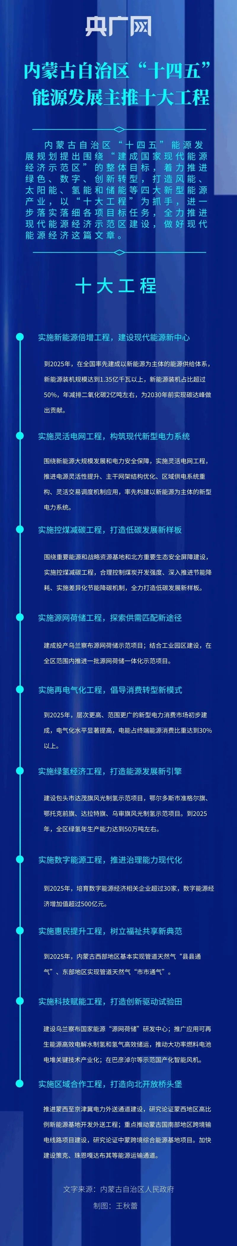 近日,內(nèi)蒙古自治區(qū)“十四五”能源發(fā)展規(guī)劃出臺,確定“十四五”時期能源發(fā)展總體藍圖和行動綱領。“十四五”時期,內(nèi)蒙古將緊緊圍繞做好現(xiàn)代能源經(jīng)濟這篇文章,以建設國家現(xiàn)代能源經(jīng)濟示范區(qū)為總體目標,推進能源和戰(zhàn)略資源基地優(yōu)化升級。