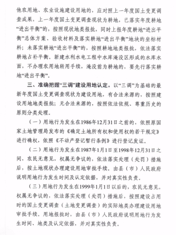3月9日,自然資源部辦公廳印發(fā)《關(guān)于以"三調(diào)"成果為基礎(chǔ)做好建設(shè)用地審查報(bào)批地類認(rèn)定的通知》,自4月15日起實(shí)施?!锻ㄖ访鞔_了建設(shè)用地審查報(bào)批時(shí)地類認(rèn)定規(guī)則。對報(bào)批時(shí)現(xiàn)狀為建設(shè)用地的,應(yīng)根據(jù)其來源合法性進(jìn)行分類處理。有合法來源的,按照建設(shè)用地地類報(bào)批;無合法來源的,按照建設(shè)占用時(shí)的國土變更調(diào)查(土地變更調(diào)查)的實(shí)際地類報(bào)批,地類為耕地的,應(yīng)依法落實(shí)耕地占補(bǔ)平衡。