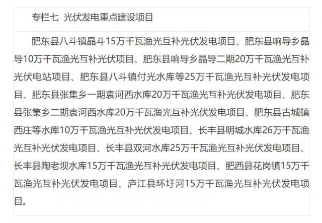 具體措施方面,要求大力發(fā)展光伏發(fā)電?!笆奈濉逼陂g,全市將不斷提高光伏發(fā)電能源效率和提升消費終端就地消納水平。堅持集中開發(fā)與分布開發(fā)并舉,充分利用水面資源開展?jié)O光互補光伏項目,利用荒山荒坡開展農(nóng)光互補項目;鼓勵具備條件的縣(市、區(qū))開展整縣(市、區(qū))屋頂分布式光伏建設(shè),引導(dǎo)工商業(yè)單位安裝分布式光伏發(fā)電系統(tǒng),鼓勵城鎮(zhèn)和新農(nóng)村建設(shè)分布式光伏發(fā)電,加快光伏建筑一體化利用模式推廣。鼓勵開展光伏+5G基站、光儲充、光伏制氫等新的技術(shù)和模式應(yīng)用推廣?!笆奈濉毙略龉夥l(fā)電186萬千瓦以上,集中式光伏主要分布在肥東、長豐、廬江、巢湖等地,分布式光伏主要分布在全市各工業(yè)園區(qū)、商業(yè)區(qū)和住宅區(qū)。