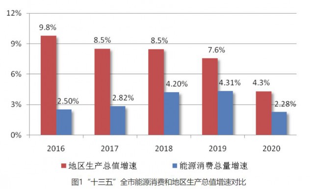 “十三五”期間,全市能源消費總量年均增速低于地區(qū)生產(chǎn)總值年均增速4.5個百分點,低于全社會用電量增速6.26個百分點。2020年,全市地區(qū)生產(chǎn)總值占全省25.97%,但能源消費總量僅占全省16.73%,能源利用日趨合理,能源利用效率全省領(lǐng)先。