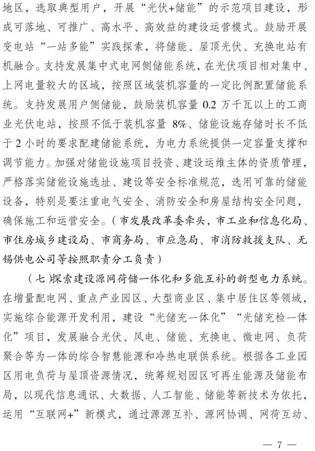 同時(shí),支持發(fā)展用戶側(cè)儲(chǔ)能,鼓勵(lì)裝機(jī)容量0. 2萬(wàn)千瓦以上的工商業(yè)光伏電站,按照不低于裝機(jī)容量8%、儲(chǔ)能設(shè)施存儲(chǔ)時(shí)長(zhǎng)不低于2小時(shí)的要求配建儲(chǔ)能系統(tǒng),為電力系統(tǒng)提供一定容量支撐和調(diào)節(jié)能力。加強(qiáng)對(duì)儲(chǔ)能設(shè)施項(xiàng)目投資、建設(shè)運(yùn)維主體的資質(zhì)管理,嚴(yán)格落實(shí)儲(chǔ)能設(shè)施選址、建設(shè)等安全標(biāo)準(zhǔn)規(guī)范,選用可靠的儲(chǔ)能設(shè)備,特別是要注重電氣安全、消防安全和房屋結(jié)構(gòu)安全問題,確保施工和運(yùn)營(yíng)安全。