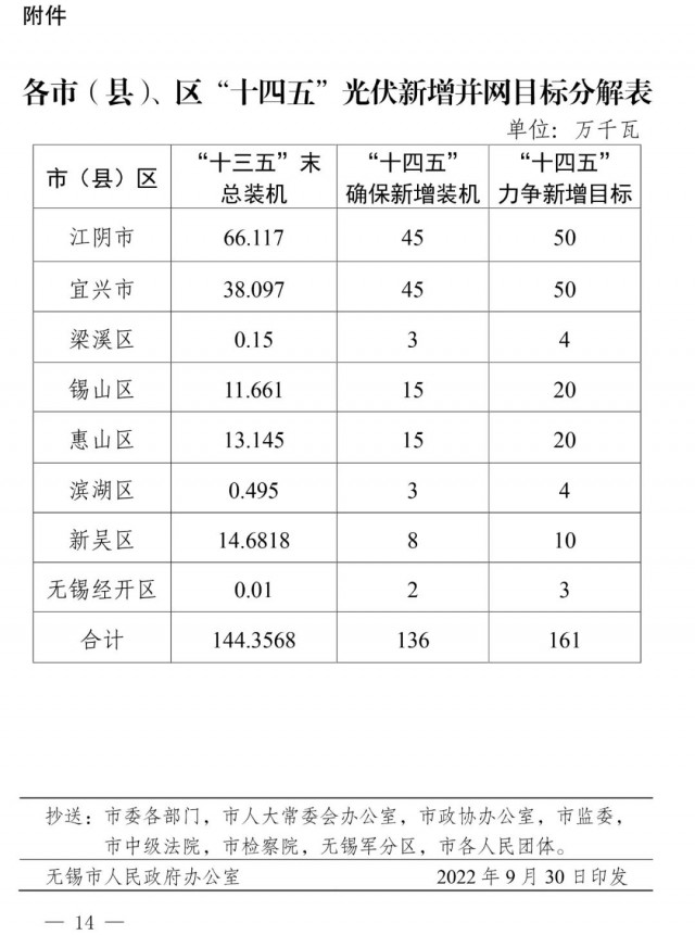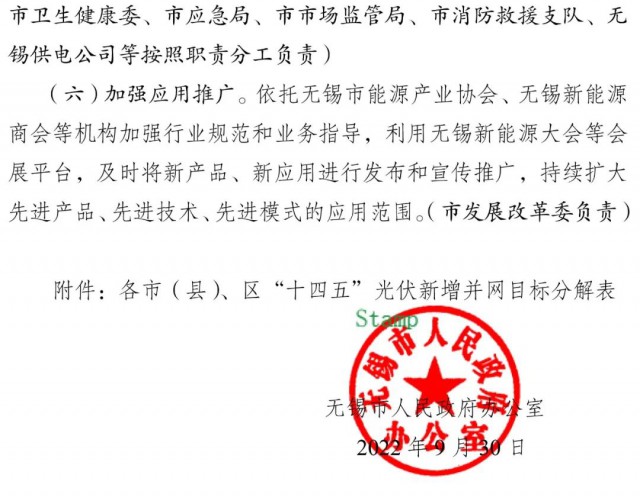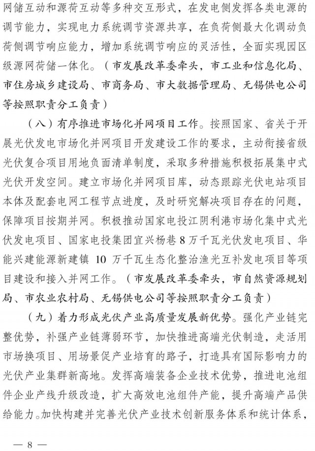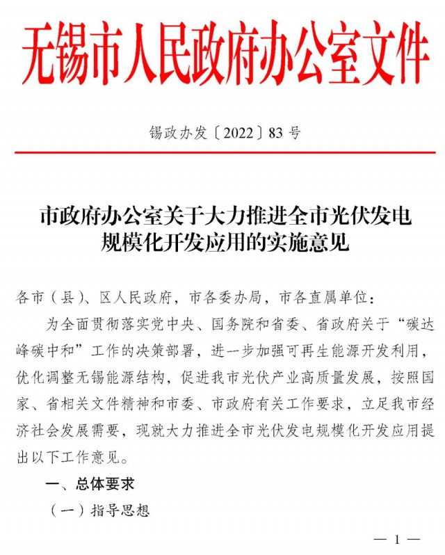近日,江蘇省無錫市人民政府印發(fā)《關(guān)于大力推進(jìn)全市光伏發(fā)電規(guī)模化開發(fā)應(yīng)用的實(shí)施意見》,文件提出:到2030年,江陰市、宜興市、錫山區(qū)、惠山區(qū)建成全國(guó)整縣(市、區(qū))屋頂分布式光伏開發(fā)試點(diǎn)縣(市、區(qū)),力爭(zhēng)創(chuàng)成1-2個(gè)試點(diǎn)示范區(qū),其他地區(qū)結(jié)合地方實(shí)際有序推進(jìn)光伏發(fā)電開發(fā)利用。