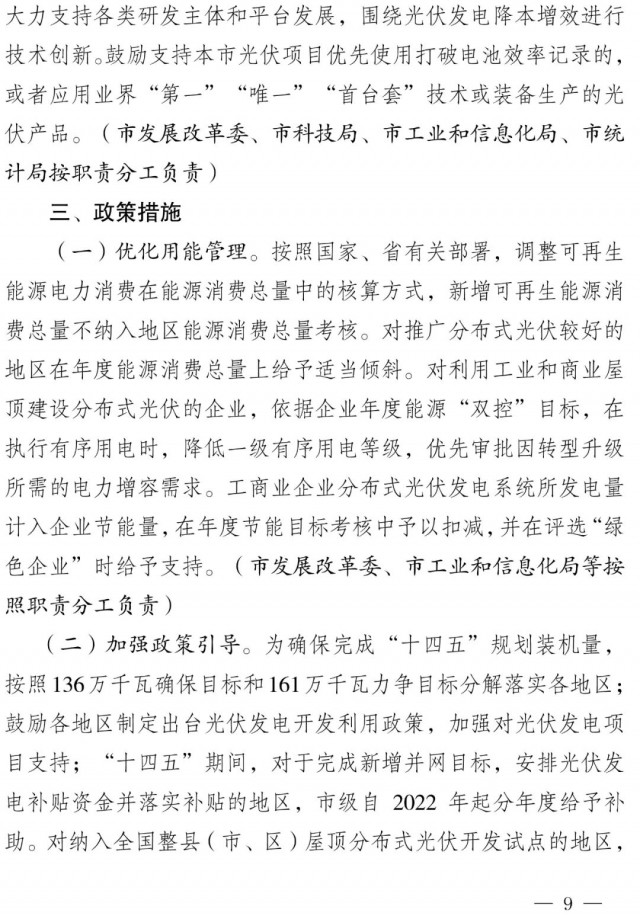 到2025年底全市確保新增光伏裝機(jī)并網(wǎng)容量136萬(wàn)千瓦,力爭(zhēng)新增光伏裝機(jī)并網(wǎng)容量161萬(wàn)千瓦,累計(jì)光伏裝機(jī)并網(wǎng)容量達(dá)到280萬(wàn)千瓦以上,光伏裝機(jī)規(guī)模占本地發(fā)電機(jī)組比重超過18%。