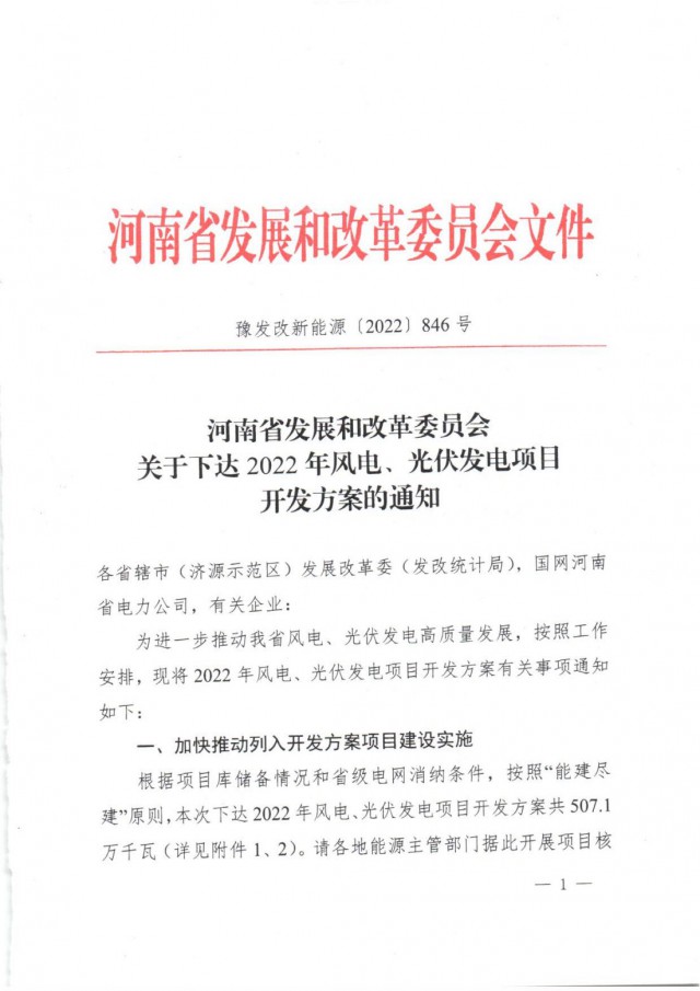 10月21日,河南省發(fā)改委發(fā)布《關(guān)于下達2022年風(fēng)電、光伏發(fā)電項目開發(fā)方案的通知》。