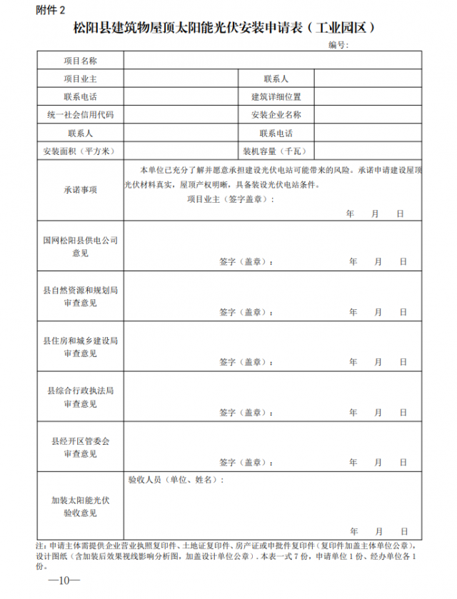 2.《松陽(yáng)縣建筑物屋頂太陽(yáng)能光伏安裝申請(qǐng)表》(工業(yè)園區(qū))