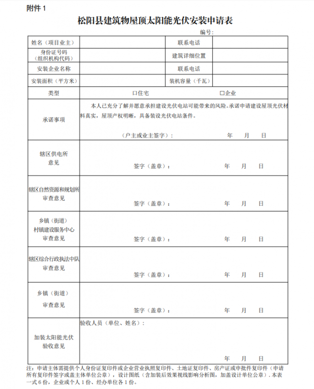 附件:1.《松陽(yáng)縣建筑物屋頂太陽(yáng)能光伏安裝申請(qǐng)表》