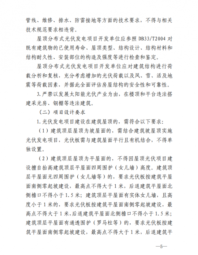 1.屋頂光伏項(xiàng)目建設(shè)需符合相關(guān)規(guī)劃,設(shè)計(jì)施工符合《浙江省整縣(市、區(qū))推進(jìn)屋頂分布式光伏開(kāi)發(fā)工作導(dǎo)則》《浙江既有民用建筑加裝太陽(yáng)能光伏系統(tǒng)設(shè)計(jì)導(dǎo)則》和本通知相關(guān)要求,并與周邊建筑物、景觀相協(xié)調(diào)。
