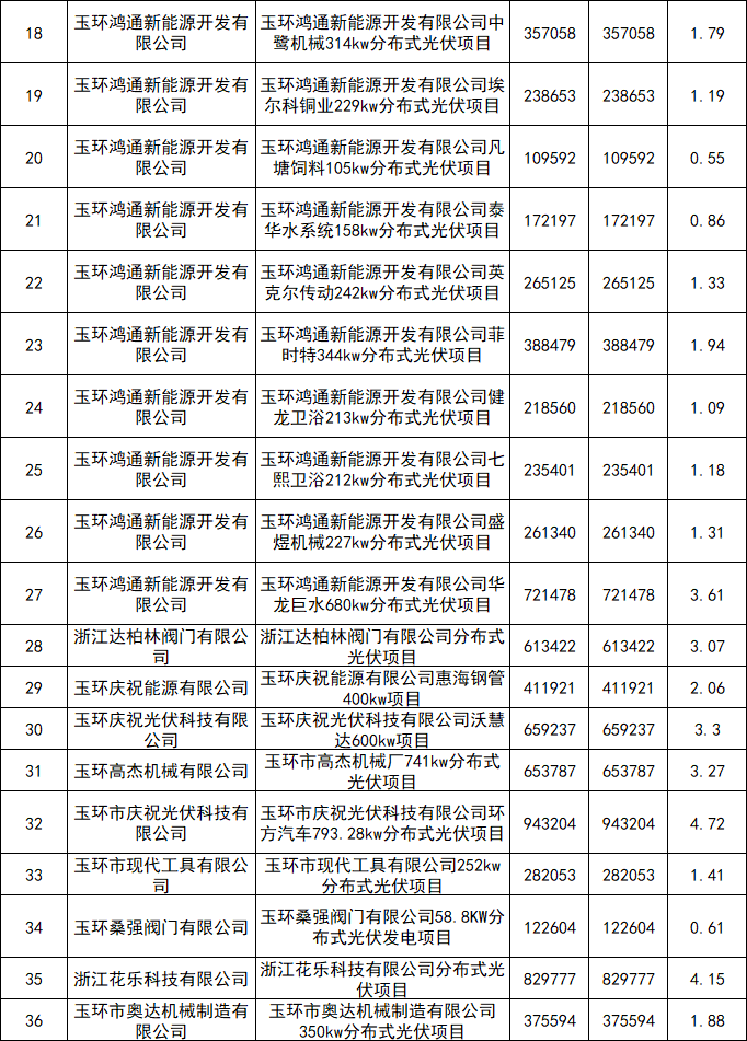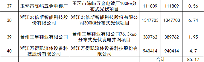 11月9日,玉環(huán)市人民政府關(guān)于撥付2021年節(jié)能技改項(xiàng)目、分布式光伏項(xiàng)目專項(xiàng)資金的公示,其中2021年分布式光伏項(xiàng)目獎(jiǎng)勵(lì)資金達(dá)到85.17萬(wàn)元。