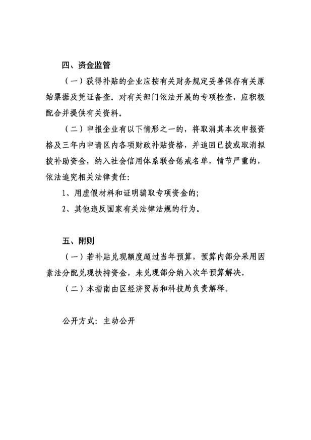 為進(jìn)一步加強(qiáng)項(xiàng)目管理,提高補(bǔ)貼資金使用效率,區(qū)發(fā)展規(guī)劃和國(guó)土資源局將對(duì)獲得補(bǔ)貼的項(xiàng)目進(jìn)行績(jī)效評(píng)價(jià)。若發(fā)現(xiàn)騙取專(zhuān)項(xiàng)資金或其他違法違規(guī)行為,按《指南》相關(guān)規(guī)定處理。