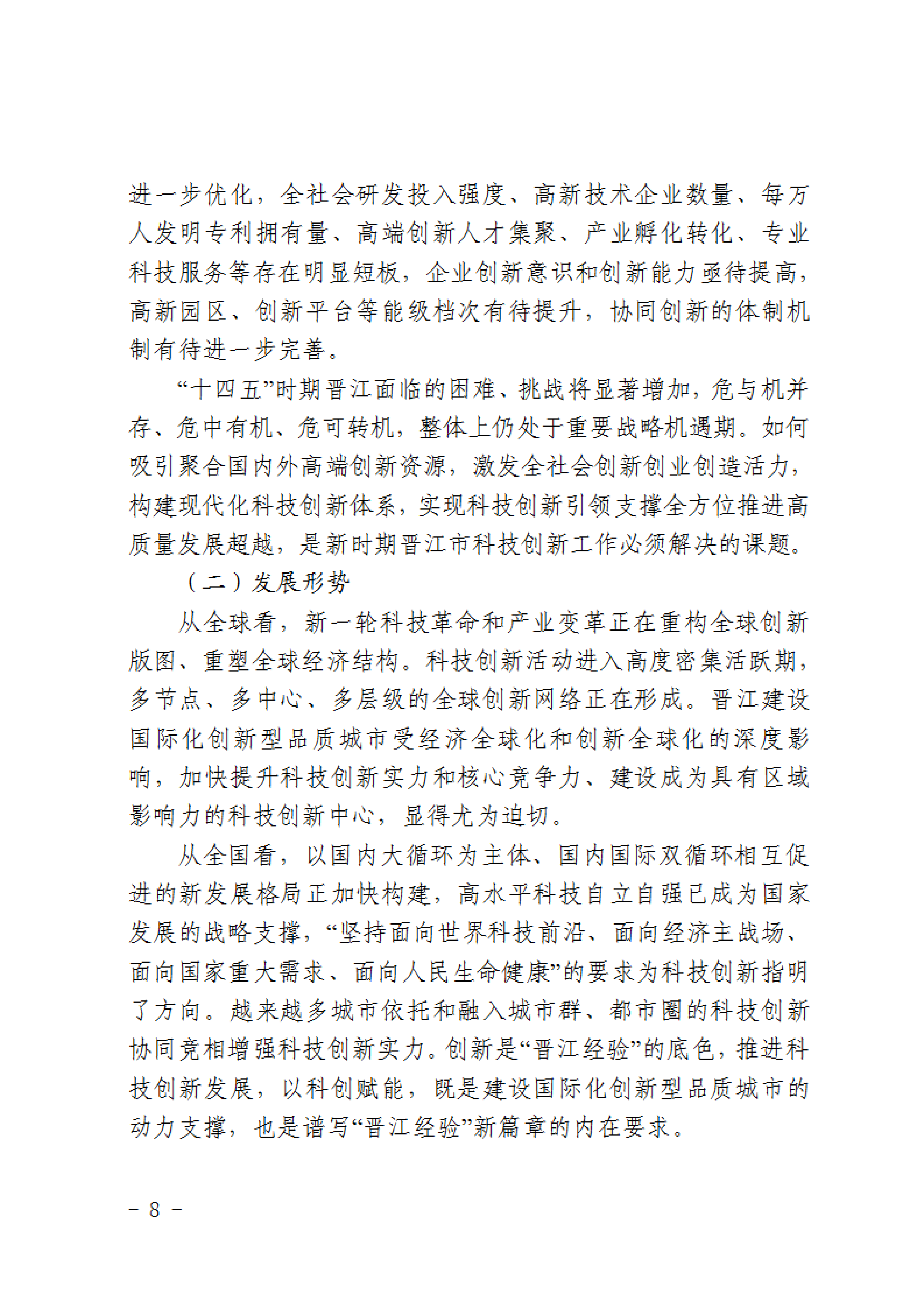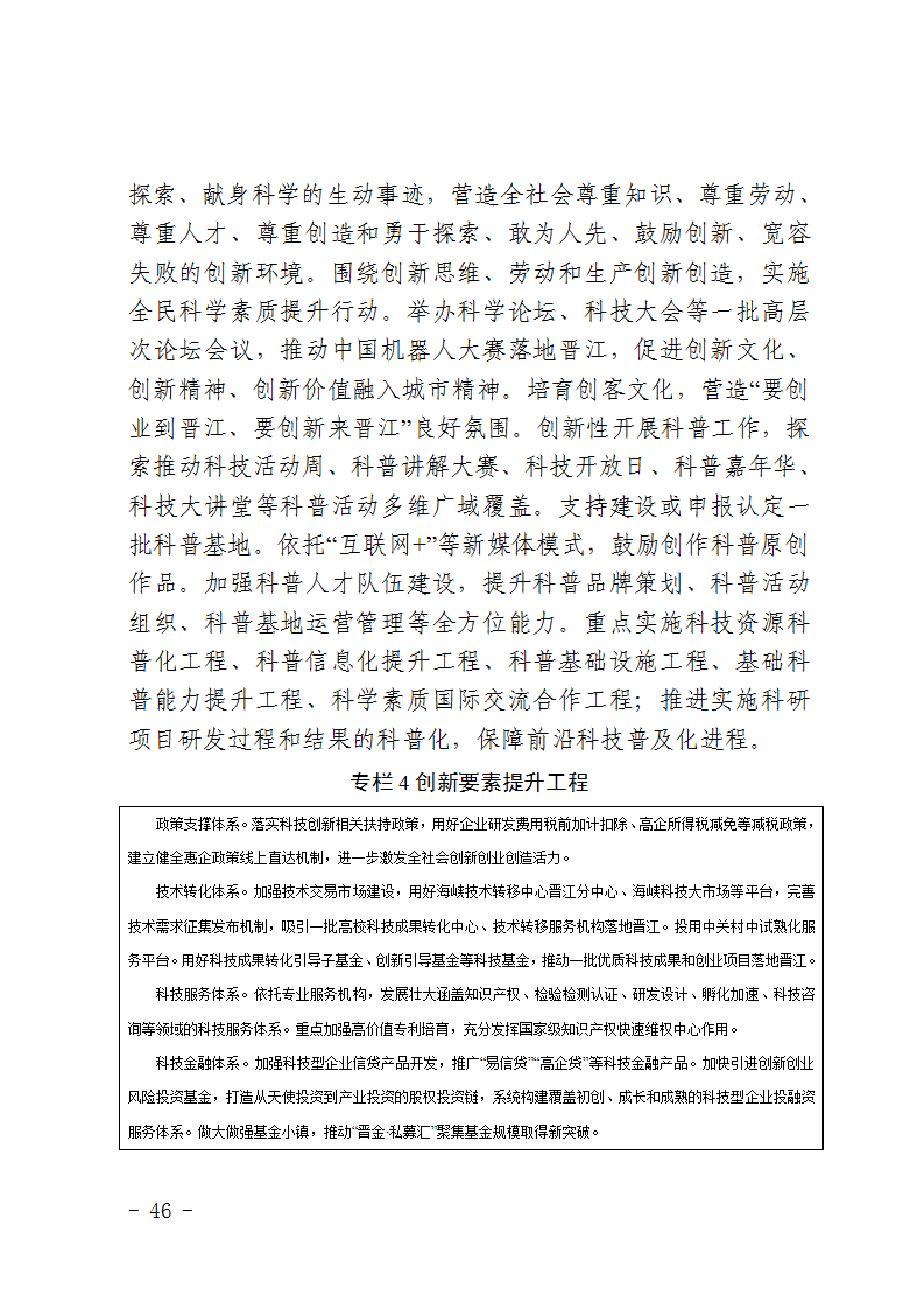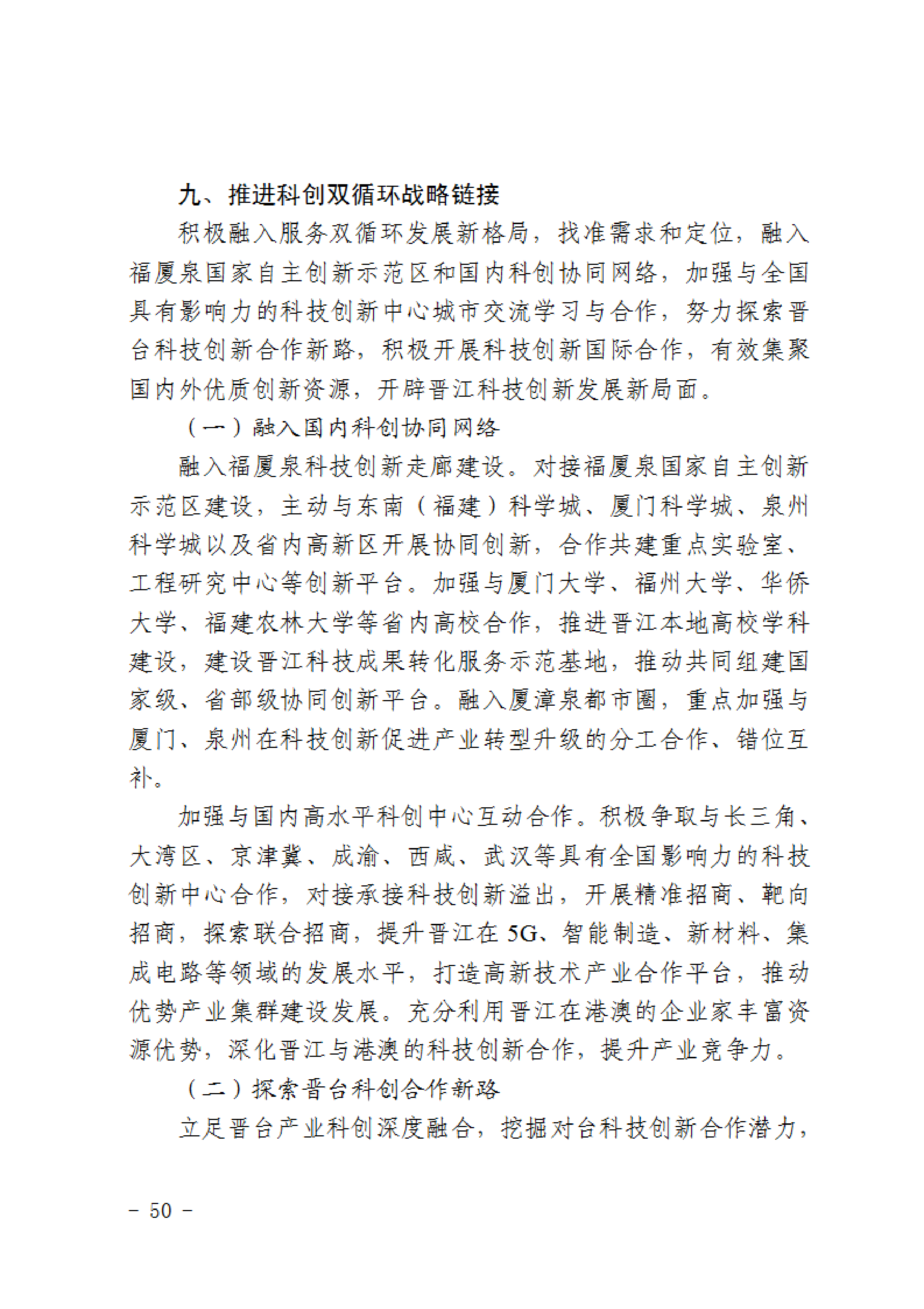 關(guān)于印發(fā)晉江市“十四五”科技創(chuàng)新發(fā)展專項(xiàng)規(guī)劃的通知